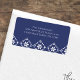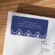 This design features a Christmas holiday winter navy blue return address label with a snowflake snow classic elegant design, a Christmas cute whimsical fun simple, Christmas holiday return address label, a Christmas holiday envelope seal, a custom customised personalised family, with last name address city town, simplistic creative elegance minimalist, with white text font lettering simple, a block style lettering family name
