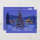 Christmas, holiday bridal shower invitations. Elegant and classic, perfect for your holiday parties. Snowy blue world with colourful Christmas tree and family lighting houses, winter evergreen trees and snowman, a divine and peaceful Christmas vintage picture will put anyone into the Christmas mood, and bring the happy, warm holiday feelings.
