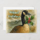 This holiday postcard showcases a watercolor illustration of a Canadian Goose adorned with holly leaves and berries. The greeting can be customised, or purchased as displayed with "Happy Holidays."