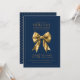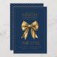 Christmas Holiday Dinner Party Gold Satin Bow Navy Invitation