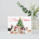 Bright Holiday or Christmas greeting postcard with a collection of dogs wearing red noses and Santa hats.