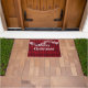 This doormat is shown in a cute festive Christmas holiday snowflakes and black and red buffalo plaid print design.
