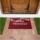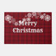This doormat is shown in a cute festive Christmas holiday snowflakes and black and red buffalo plaid print design.
