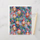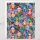 Unique Christmas pattern featuring elves and Christmas holiday decor on a blue background.