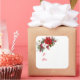Christmas gift tag sticker is shown with a festive poinsettia swag, Text of To: & From: on sticker for your gift recipient.