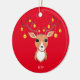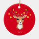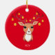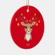 Christmas Holiday Golden Deer on Red Ceramic Ornament