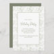 This design features a Christmas holiday party elegant floral, a green sage flower simple pattern, a QR code scannable Facebook scan, trendy stylish calligraphy script font, whimsical typography text style, botanical simple minimalist greenery, festive flower foliage leaves, classic modern traditional design, Christmas holiday party invitations, family corporate get together party
