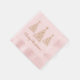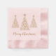This paper napkin is shown in pink with a festive Christmas trees print in gold.