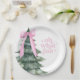 Christmas holiday party plates with Christmas tree and pink bow. Oh what fun!