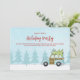Rustic Cute Blue Car or vintage Woodie wagon with a Freshly Cut Christmas Christmas holiday party festive winter, modern rustic chic winter scene, country whimsical fun funny cute, trendy stylish calligraphy script, whimsical typography font text, trees woodland car automobile, car Christmas tree on top, simple Christmas celebration invite, family friends get together, modern calligraphy celebration holiday. With a QR code with a map and directions icon to share your location and map URL