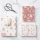 Christmas Holiday Pattern Pink Tree and Gifts wrapping paper sheet set from Ricaso