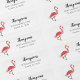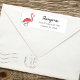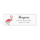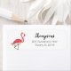 This design features a Christmas holiday return address label, a whimsical fun pink colourful bird, a Christmas string of lights, with a pink flamingo tropical bird label, a festive funny cute chic tropical, with a beach holiday pink and green theme, a Christmas holiday mailing supplies, a stylish trendy calligraphy script, a Christmas holiday envelope seal, a Christmas holiday card envelope sticker
