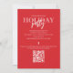 This design features a Christmas holiday party red simple, rustic farmhouse farm up north, minimalist minimal buffalo plaid, red and black check chequered, Christmas holiday get together, modern calligraphy script font, with trendy stylish typography text style, a country elegant simplistic celebration, Christmas holiday party invitations, a simple basic clean holiday invites with QR code to invite your guest to your social media page, along with a Facebook icon