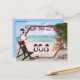 A Sunny Beach Christmas holiday scene with a Geometric red-green frame and happy penguins & Santa-hats easy to customise with your wording