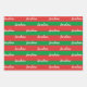 Personalised Christmas Gift Wrap. Add names to a 3 sheet Set in Classic Red, Green and White for Holiday gift giving. The Name or other Text can be the same on all three Wrapping Paper Sheets or each one can be Different. Each Striped Sheet is unique, but contains the same combination of colours.