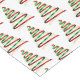 Holiday table runner is shown with a festive ribbon tree print.