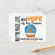 May the Peace, Love, and Hope of the Season remain with us all year long. What better time to impart this inspiring sentiment and share the important message of leukaemia awareness than during the magical holiday season of peace, love, and hope. A whimsical ribbon Christmas tree and orange leukaemia support ribbon ‘float’ gracefully in a mesmerising snow globe featuring beautiful falling snow, orange bow, and gold ‘byzantine’ base. Add a medley of varying text fonts and an eye-catching layout and you have the perfect conduit for adding a touch of leukaemia awareness to your tidings of good cheer.