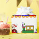 This Christmas gift wrap was designed for kids. All kids will love the colourful train with the Christmas tree and Santa Claus. This paper was designed by layering Santa and the fir tree branches onto a graphic train. Your holiday gifts will look adorable when they are wrapped in this festive Christmas train paper.