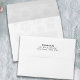 This design features a Christmas holiday minimalist envelope with a silver snowflake winter snowflake, an elegant whimsical cute fun, a frosted frost gradient effect, with a return address printed back flap, simplistic festive fun creative,5x7 a7 size envelope, white block style lettering text, simple Christmas holiday style font, a minimal classic classy holiday style