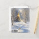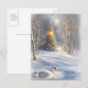 A beautiful Christmas holiday postcard with a pretty scene of a swan in the snow and a pretty Christmas tree.