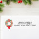 This return address label is decorated with a watercolor wreath of Christmas cookies and festive greenery.