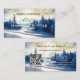 Business card featuring an artistic winter landscape with snow covered pine trees. On the back is a QR code template to add your own URL and offer customers special offers or point them to a specific page on your site.