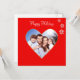 Custom family heart photo and white ornaments on red Christmas Greeting Card. Text can be personalised for other Holidays!