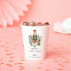 Create a personalised Christmas paper cups featuring a charming toy nutcracker. This festive paper cup allows you to add a personal touch with customisable fields for your family name and a warm greeting. Imagine the delight of your guests as they enjoy their cup of hot chocolate adorned with your unique message and the whimsical image of a nutcracker. These custom paper cups will not only elevate your holiday table setting but also create lasting memories for years to come. Easily customise by clicking the "Personalise" button.