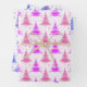 Christmas Holliday Pink Purple Blue Trees Pattern Wrapping Paper Sheet