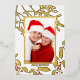 Christmas Holly and Mistletoe Botanical Art Border Foil Holiday Card