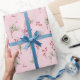 Christmas Holly and Pine Needles on Pink Background Wrapping Paper