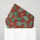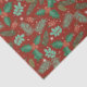 Christmas holly and pinecones in a seamless pattern on a dark red background.