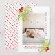 Holly Berry Peace Love Joy Christmas rectangular photo Card. A pretty design that showcases a photo, holly berry on the top left and bottom right corners, the text "PEACE LOVE JOY" in black and red and a red heart. The back includes a polka dot pattern in red and white. Photography © Storytree Studios, Stanford, CA