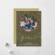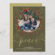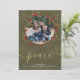 This delightful holiday card features a pattern of snowflakes and a holly berry wreath .. the card is designed in muted green tones - with a lovely delicate scroll font detail with the word "peace" - this can be changed to suit your requirements