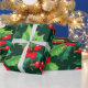 Christmas Holly Leaves and Berries Pattern Wrapping Paper