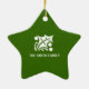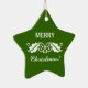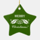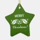 Christmas Holly Leaves star-shaped ornament features on its front, white elegant holly leaves on a green background with custom text "Merry Christmas!" and at the back the family name can be added. The background colour can be changed by simply customising. © Morning 6