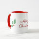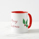 An Xmas mug with holly and its red berries, a customisable text "Merry Christmas". To give a gift, to drink your coffee at the office or a hot chocolate at home, this mug will set the mood.