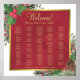 This exquisite seating chart is designed in the spirit of Christmas for the holiday season. Delight in hand-painted watercolor holly leaves, berries, pinecones, and pine branches set against a marbled crimson red backdrop, elegantly framed in golden faux foil. The sophisticated script title, "Welcome - please find your table," adds a touch of elegance, and the bottom has space for the names of the couple or event. Organised in alphabetical order, this chart accommodates up to 200 names, ensuring a seamless seating arrangement for your guests. An ideal choice for a Christmas wedding or a glamourous holiday celebration.