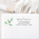 This return address label is decorated with watercolor green holly and red berries and says "Merry Christmas" in stylish typography.