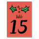 A Christmas holly wedding table number by Helen McCartney Designs.