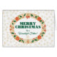 A festive Christmas card for a Wonderful Father, with a Christmas wreath of Holly, Ivy, Poinsettias, Fir Cones, Christmas Roses and a matching red bow, outlined in gold-effect, with gold-effect snowflakes on a white background. A custom front card in this series is also available.