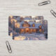 Christmas Holiday Business Card for your professional decorating, lighting business. Pretty country home with beautiful holiday decorations on the windows and doors. Pine trees have been decorated with sparkling lights.