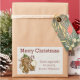 Label your home made holiday goody gifts with this stylish Christmas custom sticker. Graphics of a linen looking background and cute graphics of gingerbread men and other holiday treats, decorate the left side of the label. Personalise the red text to read what you want. Great for anything you can make, from breads, soaps, jams, to knitted items.