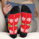 Cute red Christmas socks with white snowflakes and honey bees. Super festive gift for beekeepers and nature lovers.