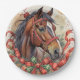 Celebrate the holidays in style with these charming Christmas horse party pillow, featuring elegant dressage horses adorned with plaid bows and ribbons in a beautiful watercolor design.