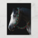 A cute horse with Christmas halter on AI generated so the tack is not really correctly on the horse