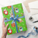 This wrapping paper is versatile and can be used for giving gifts or art and craft projects. It is ideal for any occasion such as Christmas, birthdays, weddings, bridal showers, baby showers, anniversaries or general gifts. The design features cups of hot cocoa with cute Christmas characters such as a snowman, penguin, reindeer and Santa Claus on a green background with stars.