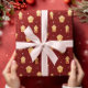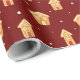 Christmas House Gingerbread On Dark Red Background Wrapping Paper
