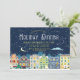 Our "Christmas house in snow" collection features colorful and decorative house illustration in a row with street lights, trees and Christmas tree. Background is blue or navy blue depending if it shows night or day with snow overlay. Decorative script combined with serif font for all information that needs to be customized is a perfect combination. Decorative script "holiday dinner" pairs great with illustrations and makes a great invite for your friends and family. Check our store for more matching items from this collection.