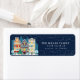 Return address label with colorful houses in row on a snowy day illustration paired with a decorative script and a serif font for all your personalized information. The background comes in two color options, light and dark blue. Check out our store for more items from this collection.